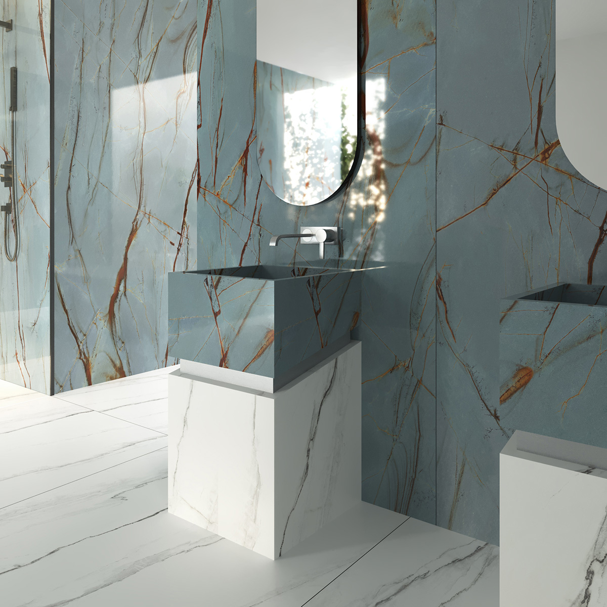 With the amazing essence of the Blue Roma texture, which represents a vibrant blue and copper mixture, you will experience a luxurious elegance.