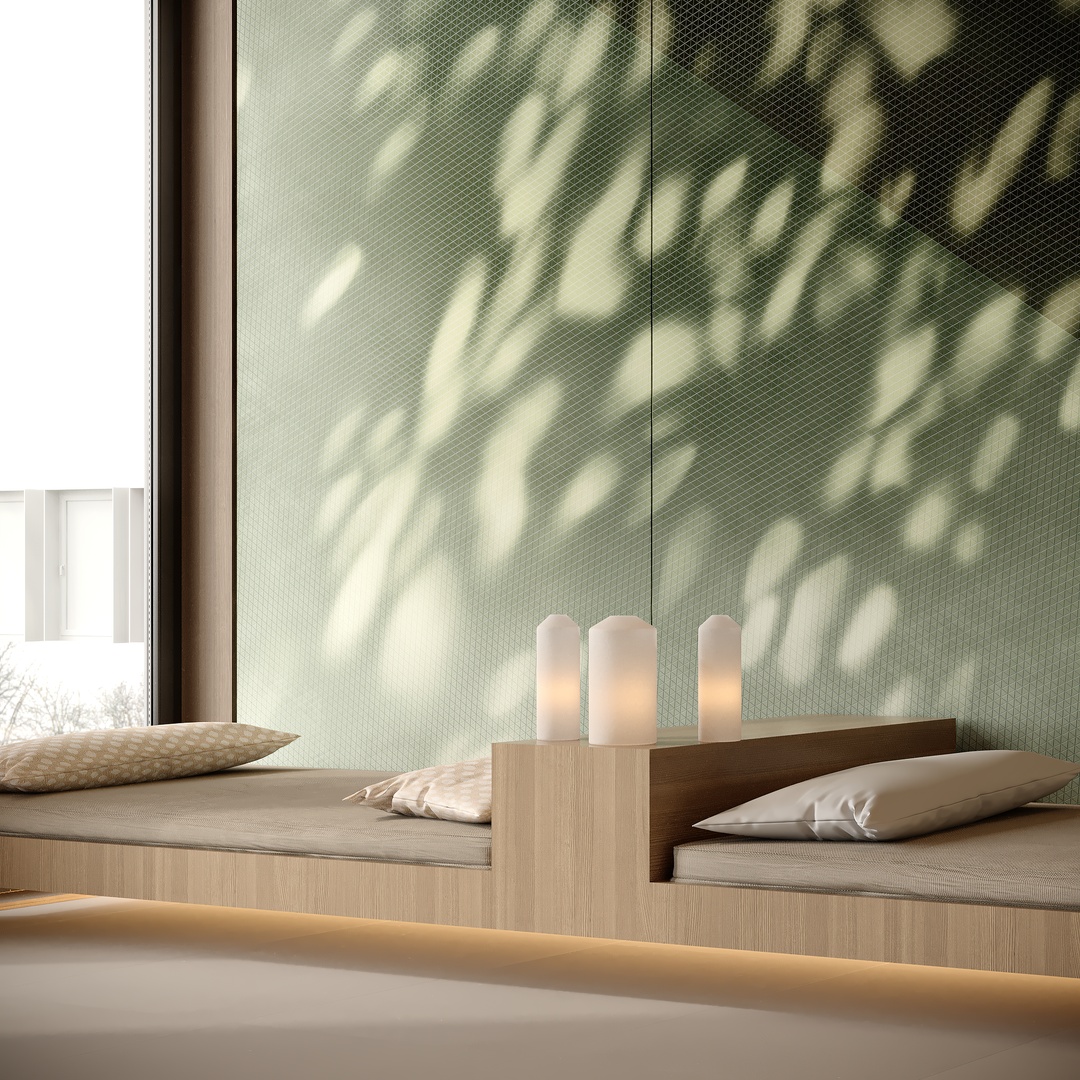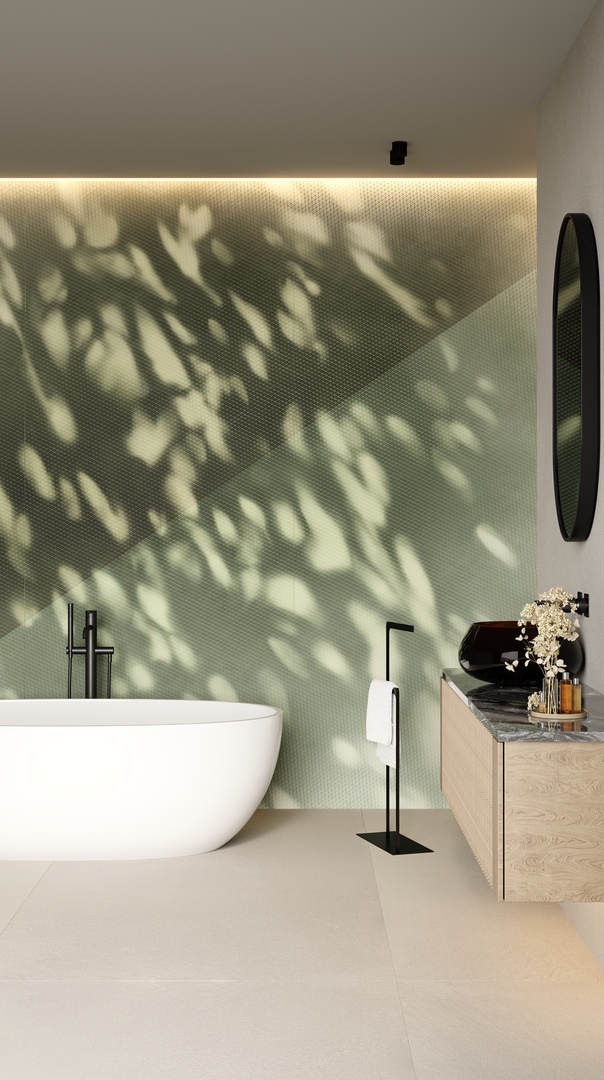 Glare Decorative Slab is an artwork inspired by a seashell installation and nature’s allure within the Lumin collection. Glare serves as an abstract window, an artistic interpretation of light passing through the leaves, where nature gracefully enters your interior space.