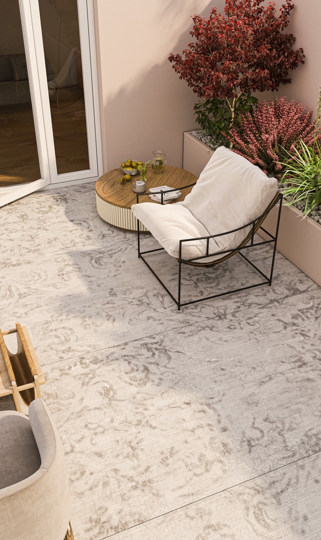 HYPNOTIZE captures the enchanting allure of a vintage Persian carpet, where the graceful fading of natural wear reveals timeless beauty. Its mesmerizing patterns blur together, creating a hypnotic effect that calms the mind and invites tranquility. Subtle antique white lines, echoing the carpet’s original warp and woof, highlight areas enhanced with Evo-dry technology, offering a refined tactile experience.