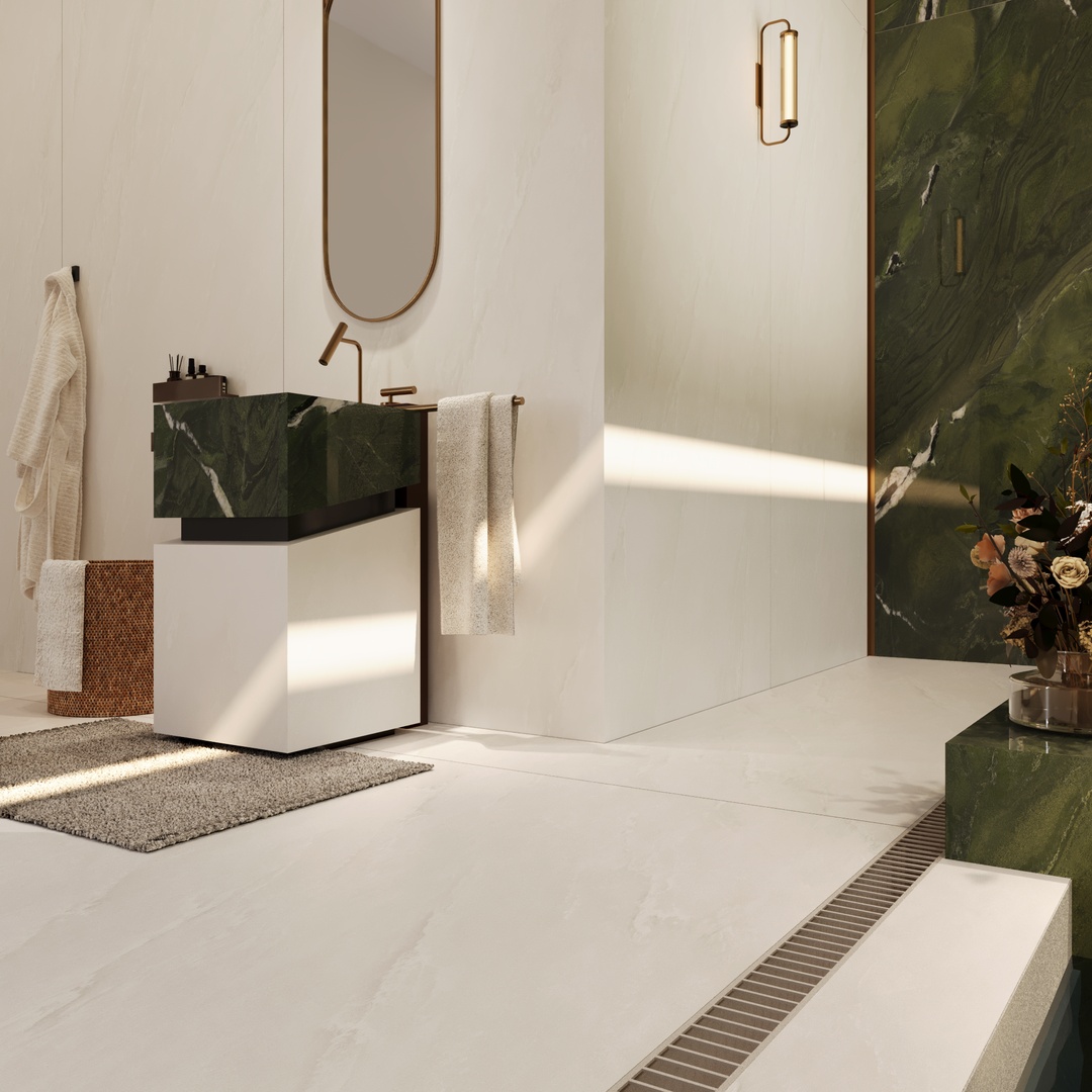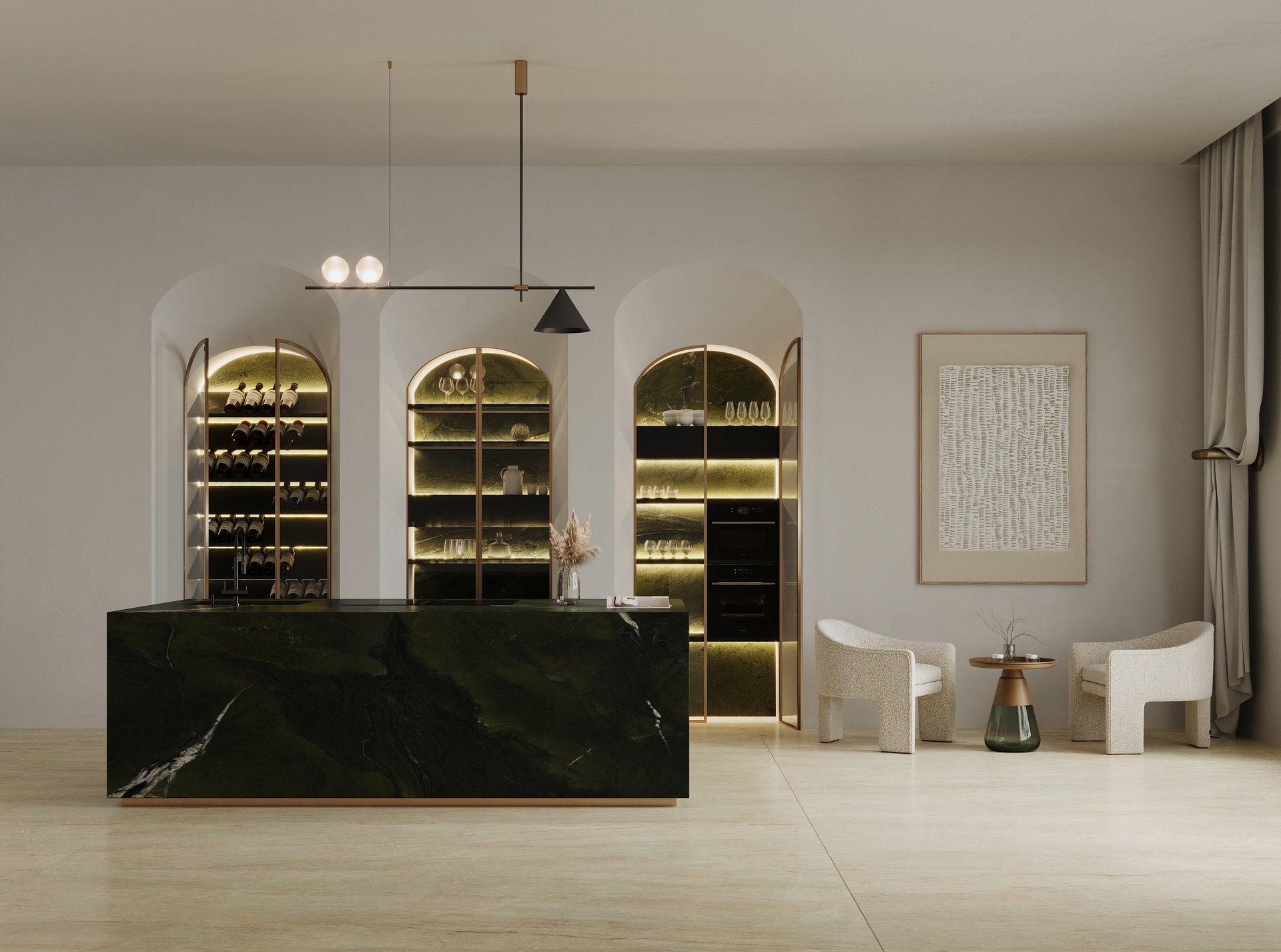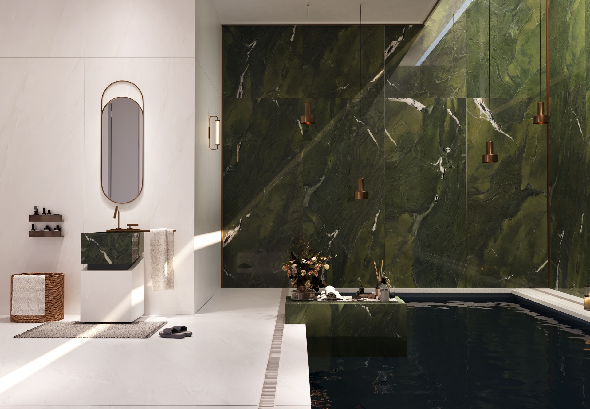 MIRACLE GREEN is a stunning porcelain masterpiece inspired by the timeless elegance of Avocado Brazilian Quartzite. Its rich, vibrant green backdrop, adorned with intricate white veins, exudes opulence and sophistication. The natural patterns convey both serenity and strength, bringing a sense of tranquility and presence. MIRACLE GREEN’s captivating palette captures the essence of nature, infusing any space with a revitalizing, refreshing atmosphere.
