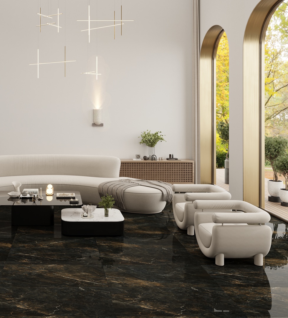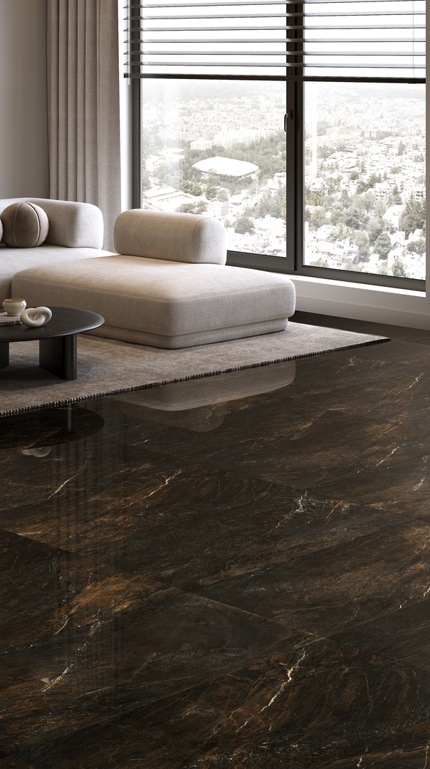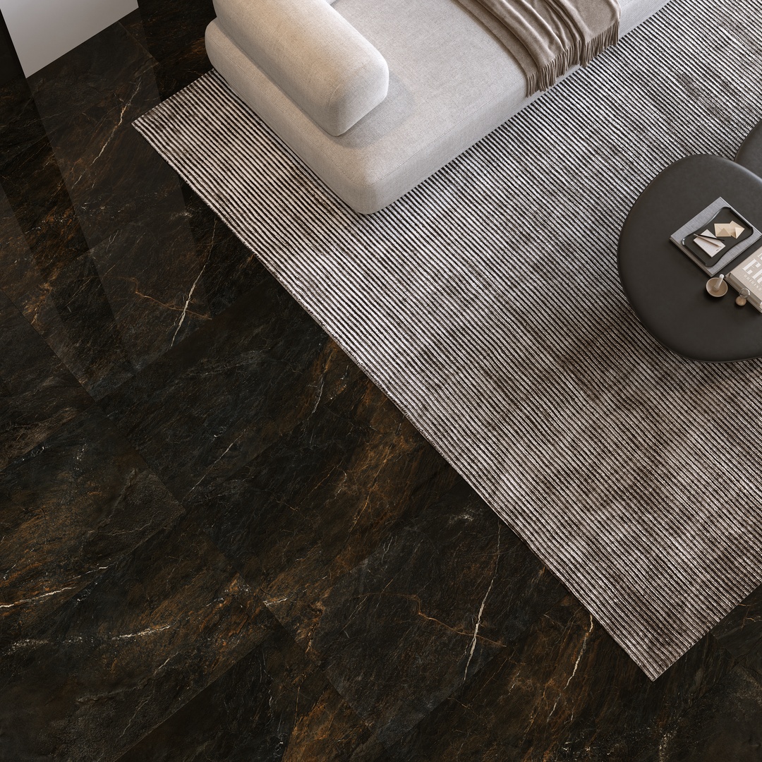 The polished finish enhances its bold contrasts and visual depth, making it an ideal choice for both interior and exterior spaces—from refined office environments to warm, intimate rooms. Volcano blends natural strength with artistic sophistication, adding timeless character to any setting.