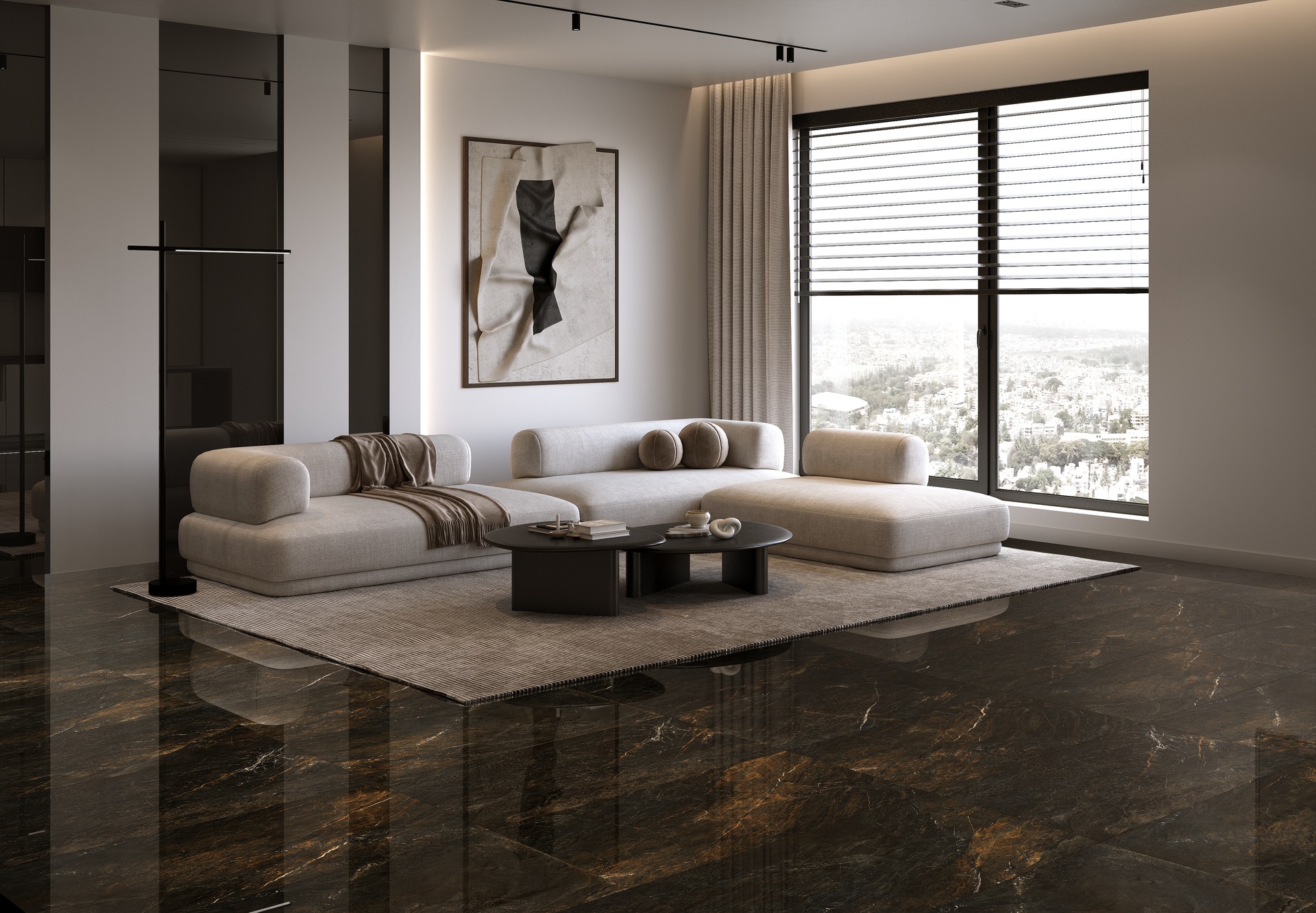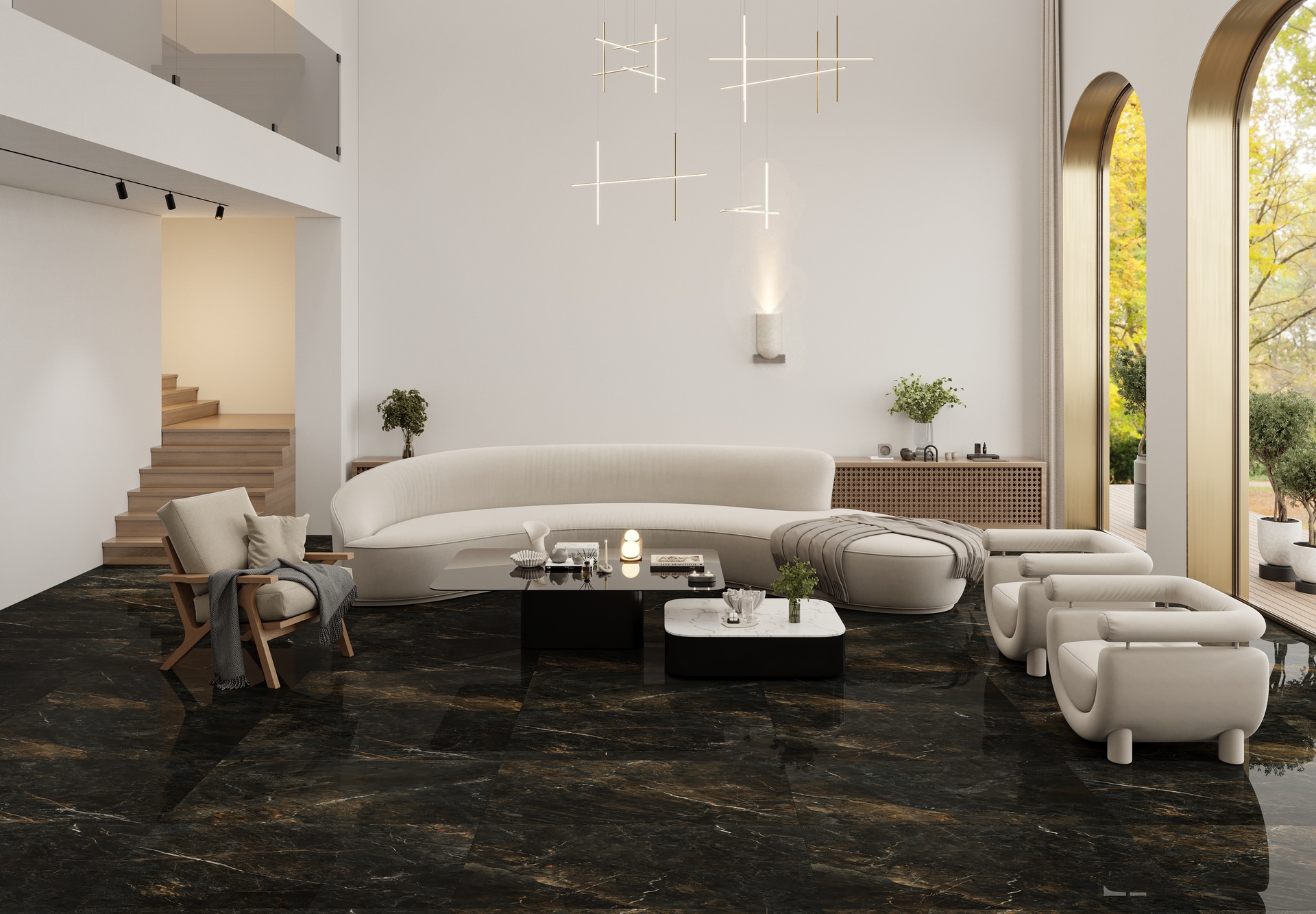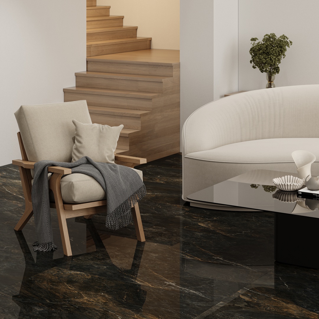 The polished finish enhances its bold contrasts and visual depth, making it an ideal choice for both interior and exterior spaces—from refined office environments to warm, intimate rooms. Volcano blends natural strength with artistic sophistication, adding timeless character to any setting.