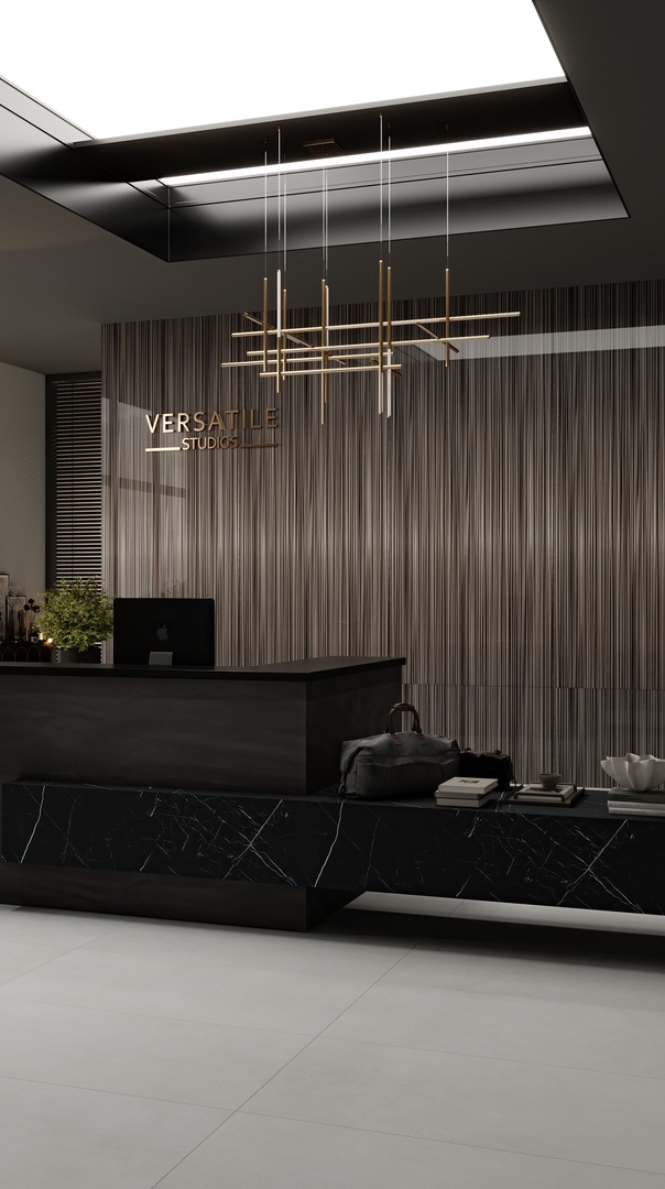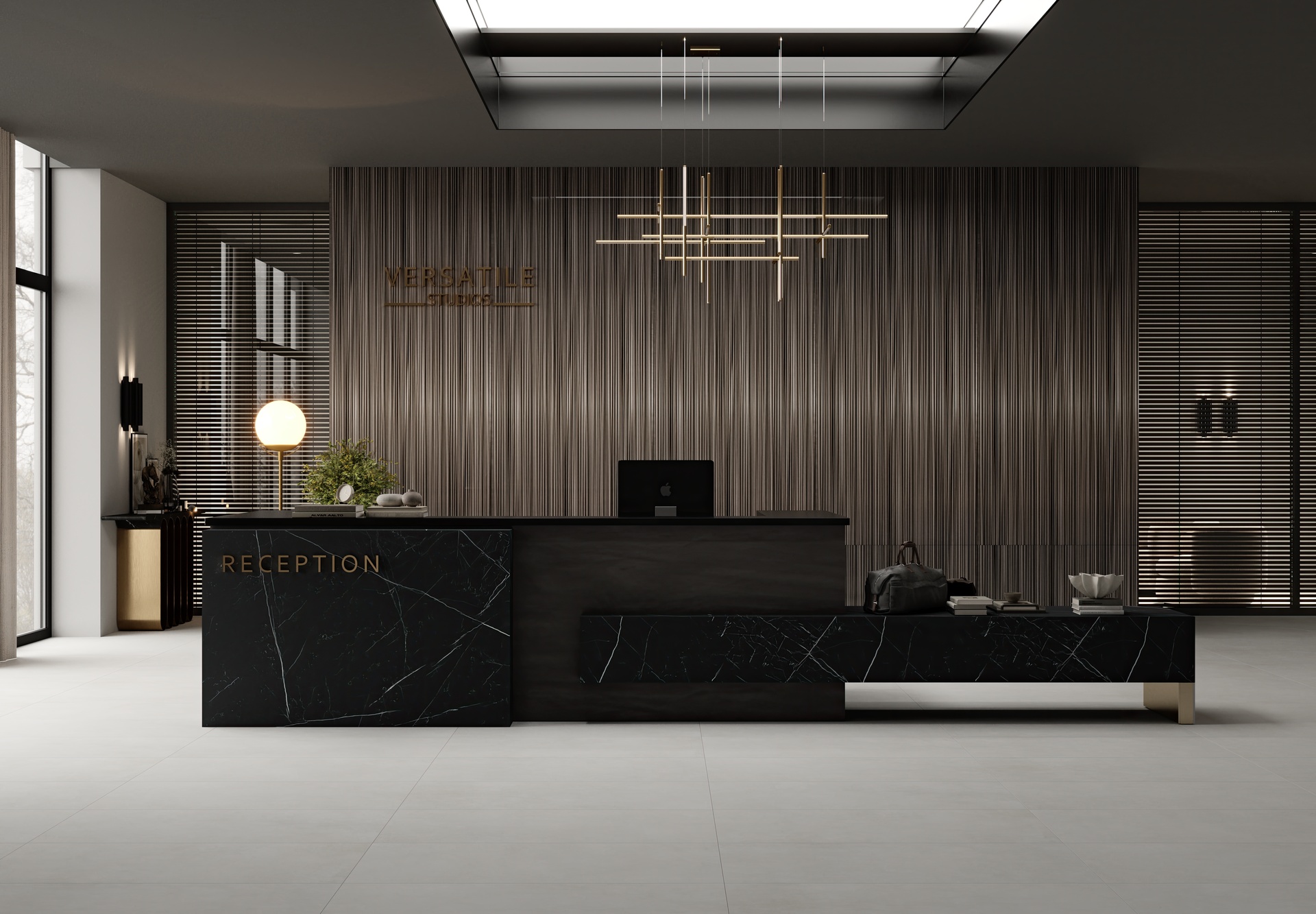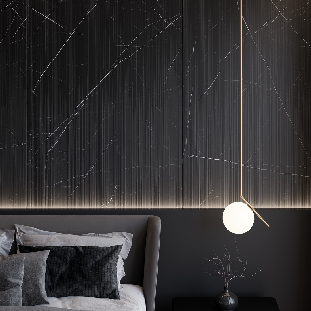 The Marquina Wind design is inspired by Nero Marquina marble, originally from Spain, which is one of the most popular black marbles in the ceramic industry. The veins in this elegant design vary in thickness, creating balance and beauty. The deep black background captures the bold character of Marquina. The Wind relief enhances this classic, fashionable marble by balancing the intense dark tone with movement and reflections of light.